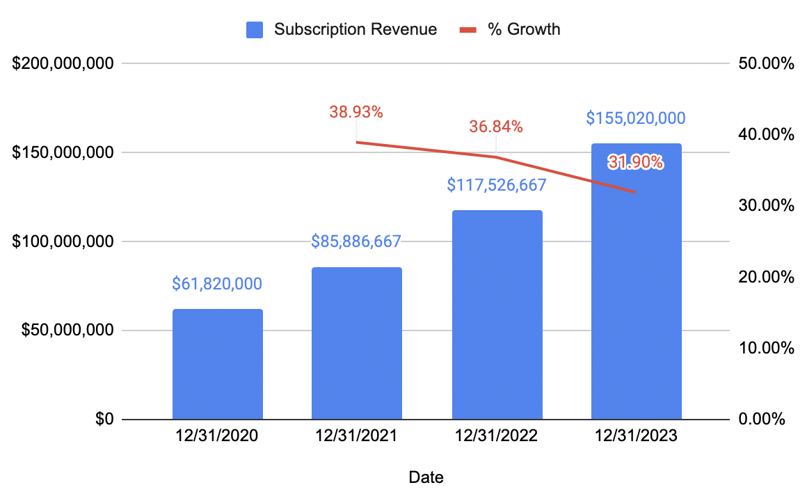 CloudSign hasn’t cleared the 100m USD mark, its subscription revenue as of the end of 2023 sits at $37.1m significantly surpassing FY2023’s revenue figures. With a quarter remaining in its fiscal year, it’ll be interesting to see how much more revenue it’ll be able to add.